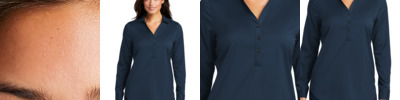 Comfort and performance meet classic corporate style. Odor-fighting, wrinkle-resistant and moisture-wicking, these looks have just the right amount of stretch to keep up with a busy day. 3.7-ounce, 93/7 poly/spandex Odor-fighting Wrinkle-resistant Moisture-wicking Open collar and neckline Longer tunic length Pearlized buttons Rounded adjustable cuffs Curved hem