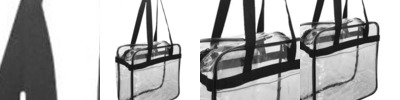- Clear front pocket and double zipper pull