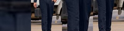 - Two slack-style front pockets, two set-in hip pockets, left pocket has button closure