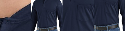 - Color blocked shirt with hi vis upper half for ANSI compliance and grey lower half to conceal dirt and stains