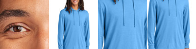 Go out to the game in this moisture-wicking hooded jacket. 3.5-ounce, 90/10 poly/spandex 100% poly tricot mesh insert Snag-resistant Tag-free label Attached hood Contrast tonal mesh panels at shoulder and under arms Front pouch pockets Adjustable fit at hem with side toggles