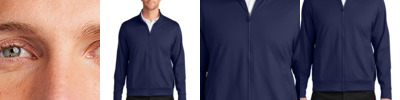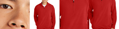 7.7-ounce, 89% recycled polyester/11% spandex interlock knit (solids) 7.7-ounce, 81% recycled polyester/8% polyester/11% spandex interlock knit (heathers) This product's carbon footprint has been measured and reduced through a combination of preferred materials and investing in carbon offset projects through the ClimeCo Certified Product ™ Program Snag-resistant Moisture-wicking UPF rating of 50+ Forward shoulder Dyed-to-match, recycled, molded zipper with dyed-to-match rubber-tipped pull Angled front pockets with stitching detail Self-banded cuffs and hem Tag-free label