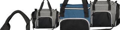 - Features grommeted adjustable soft black Nylon shoulder strap doubles as drawstring closure