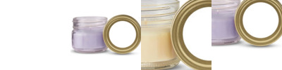 • Set includes two wax candles secured inside a 3 oz. Mason jar with gold lid