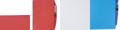 - Spiral-bound notebook with durable and flexible translucent fold-over cover with tab-style closure