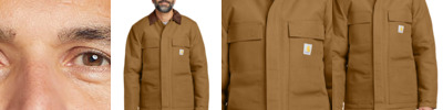 Gear up for the cold with Carhartt's Duck Traditional Coat featuring a quilted nylon lining with arctic-weight polyester insulation. 12-ounce, firm hand, 100% ring spun cotton duck canvas Wind Fighter ® technology tames wind Quilted nylon lining for easy on and off; arctic-weight 100% polyester insulation for ultimate warmth Corduroy-trimmed collar Two-way brass center-front zipper plus storm flap with hook and loop closure Two chest pockets with flaps and hook and loop closures Two interior pockets Two large lower-front pockets Articulated elbows Inner sleeve, rib knit storm cuffs Split-back construction Pleated bi-swing back Carhartt-strong, triple-stitched main seams Carhartt label sewn on left chest pocket Loose fit