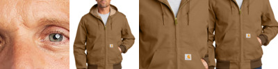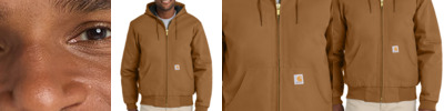 When Old Man Winter and Mother Nature get all riled up, reach for the Duck Active Jac. It can handle what this fearsome twosome dishes out. It's warm, versatile and rugged. 12-ounce, firm hand, 100% ring spun cotton duck canvas 100% polyester filling Wind Fighter ® technology tames wind Quilted-flannel lining in body, quilted-nylon lining in sleeves Attached quilted-flannel-lined three-piece hood with drawcord closure Full-length brass front zipper Two interior pockets: one zippered, one hook and loop Two large hand pockets Locker loop Rib knit cuffs and waistband Carhartt-strong, triple-stitched main seams Carhartt label sewn on left pocket Loose fit