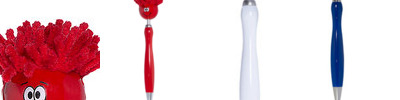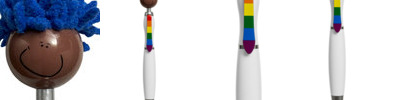 - Click-action ballpoint pen with smiley face, awareness ribbon shaped clip and mop-top hair