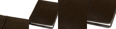 - Holds ID/business card behind acetate viewing window on back panel hidden by leather flap