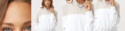 12-ounce, 82/18 cotton/poly fleece 77/23 cotton/poly (Oxford Grey) 66/34 cotton/poly (Charcoal Heather) Reverse Weave cross-grain cut resists shrinkage Two-ply hood with dyed-to-match drawcords Oversized, relaxed fit with dropped shoulder sleeves 1x1 rib knit underarms, sides and sleeve cuffs Cut-off hem with stitched edge Embroidered Champion C logo at left cuff Woven back neck label