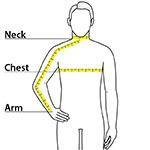 | Chest | 32-33 1/2 | 34-35 | 36-37 | 38-40 | 41-43 | 44-47 | 48-51 | 52-55 |