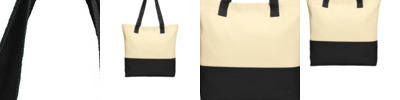 This versatile cotton tote has colorblock handles and bottom for on-trend style and a modern look. 10-ounce, 100% cotton twill body; 11-ounce, 100% cotton canvas handles and bottom Reinforced self-fabric handles with stress point stitching Interior metal snap closure Dimensions: 15.5'h x 14.25'w x 4.5'd; Approx. 994 cubic inches Note: Bags not intended for use by children 12 and under. Includes a California Prop 65 and social responsibility hangtag.