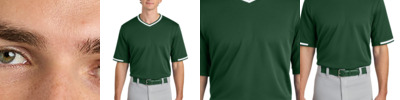 This durable Tough Mesh V-Neck is ideal for baseball and softball teams. Performance features include moisture wicking along with PosiCharge ® technology to keep colors and team logos sharp. 5.3-ounce, 100% polyester flat back mesh with PosiCharge technology Moisture-wicking Striped rib collar and sleeve hem