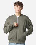 9.5-ounce, 80/20 ring spun US cotton/polyester 3-end fleece; 100% soft ring spun US cotton face for enhanced printability Garment-dyed for a lived-in feel Back neck patch for customization Self-fabric lined collar Twill zipper pull Rolled forward drop shoulder 1x1 rib knit cuffs and waistband Signature twill label Relaxed fit, side seamed The garment-dyeing process infuses each garment with unique character. Please allow for slight color variation in production and washing. Special consideration must also be taken when printing white ink on garment-dyed cotton. **