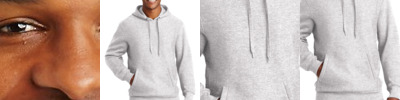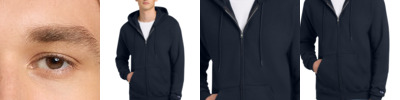 9-ounce, 50/50 cotton/poly 50/40/10 cotton/poly/black poly (Light Steel) Double Dry technology wicks moisture Two-ply hood with dyed-to-match drawcords Covered placket 1x1 rib knit sleeve cuffs and hem Front pouch pocket Embroidered Champion 'C' logo at left cuff Woven back neck label