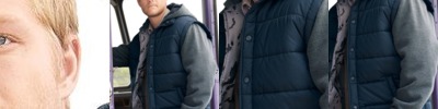 • Raw-edge seams around hood opening, shoulders, pocket seams, cuffs, waistband and side seams