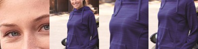 • Scuba neckline with lapover hood construction