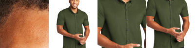 Combining the smart tailoring of a woven shirt with the movement and comfort of a soft knit, this shirt eases between night and day. The polished silhouette complements office wear, while the moisture-wicking fabric make it perfect for post-work play. A back yoke seam notched vent hem, and satin-finished buttons extend the contemporary profile. Fabric+Weight 5.5-ounce, 55/40/5 cotton/poly/spandex diamond pique Features+Benefits Moisture-wicking Self-fabric, button-down collar Rimmed, black satin-finished buttons (White buttons on white) Back yoke Self-turned cuffs and hem Notched vents