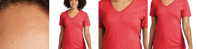 4.3-ounce, 60/40 combed ring spun cotton/poly, 32 singles CVC blend 1x1 rib knit neck Shoulder to shoulder taping Tear-away label Side seamed