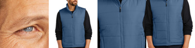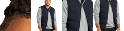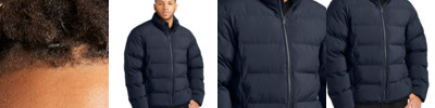 With wider baffles for a modern look, this water-resistant puffer looks cool while keeping you warm. 100% polyester shell and lining Molded center front zipper Interior storm flap Zippered hand pockets Insulation method: 4.4-oz. polyfill Water protection method: water-repellent finish Port Pocket for decoration access