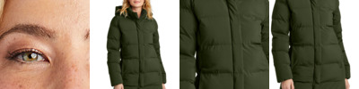 Professional and polished while protecting from the elements, this lofty, high-performing puffy is intentionally designed to lend dependable warmth and transitional style for downtown or out-of-town. The DWR finish sheds moisture while the blown-in synthetic insulation gives the soft, lightweight and pliable effect of down with easy washability. Fabric+Weight 100% polyester 5K/3K waterproof breathable fabric 12.7-ounce, 100% polyester blown insulation Features+Benefits Quilted 3-piece hood Reverse coil, 2-way front zipper Interior storm flap Exterior storm flap with hidden snap closure Interior right-side pocket Hidden, zippered hand pockets Elastic at inner cuffs Decoration access pocket