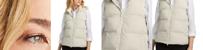 With wider baffles for a modern look, this water-resistant puffer looks cool while keeping you warm. 100% polyester shell and lining Molded center front zipper Interior storm flap Zippered hand pockets Insulation method: 4.4-oz. polyfill Water protection method: water-repellent finish Port Pocket for decoration access