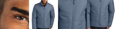 With wider baffles for a modern look, this water-resistant puffer looks cool while keeping you warm. 100% polyester shell and lining Molded center front zipper Interior storm flap Interior right chest pocket Zippered hand pockets Insulation method: 4.4-oz. polyfill Water protection method: water-repellent finish Port Pocket for decoration access Adjustable hem with locking drawcord