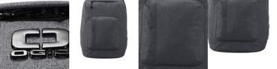 600D poly canvas (solid); 600D heather poly (heather) Main compartment with padded laptop panel Interior organization pockets Front zippered rucksack flap Hook closure on front Exterior side pocket Padded air mesh shoulder straps Luggage trolley pass through on back Laptop sleeve dimensions: 12'h x 11'w x 1'd; fits most 15' laptops Dimensions: 17'h x 10.5'w x 5'd; Approx. 893 cubic inches Note: Bags not intended for use by children 12 and under.