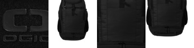 Textured poly weave Drawcord at opening to cinch closed Exterior pockets Interior organizer pockets Padded laptop compartment Metal snap buckle closure Metal OGIO zipper pulls with rubber coating Integrated padded luggage trolley pass through on back Laptop sleeve: 16.3'h x 12.5'w; fits most 15' laptops Dimensions: 18'h x 12.5'w x 6.2'd Capacity: 976 cu.in./16 L Weight: 1.5 lbs./0.68 kg Note: Bags not intended for use by children 12 and under.