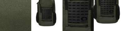 100% ballistic poly Two front pockets Main compartment has a water bottle holder and mesh organizer Fully adjustable shoulder straps Side zipper allows quick access to pack interior Metal OGIO zipper pulls with webbing High-density O heat transfer Laptop sleeve: 12'h x 9'w; fits most 13' laptops Dimensions: 16'h x 9'w x 5.7'd Capacity: 1,098 cu.in./18 L Weight: 1.5 lbs./0.66 kg Note: Bags not intended for use by children 12 and under.