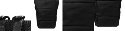 1,000D/1,000D ballistic poly PVC Easy-grip top handle Back panel side-entry padded laptop pocket Large center storage area Side power cord and mouse storage pockets Internal file sleeve Fleece-lined digital media/audio pockets Adjustable sternum strap Deluxe organization panel Integrated luggage trolley pocket on back Laptop sleeve: 16.5'h x 12.5'w; fits most 15' laptops Dimensions: 17.7'h x 12.5'w x 10.6'd Capacity: 1,830 cu.in./30 L Weight: 2.42 lbs./1.1 kg Note: Bags not intended for use by children 12 and under.