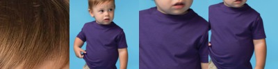 A rib collar basic for baby in a rainbow of colors with strong double-needle stitched sleeves.
